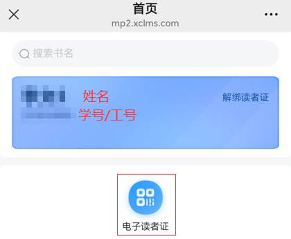 4、绑定成功后,会显示姓名和读者账号,然后点击电子读者证直接显示读者证二维码