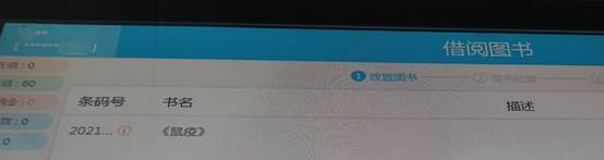 十、操作成功后将提示借阅成功,失败则提示原因,可将失败图书拿到大堂给值班老师处理。