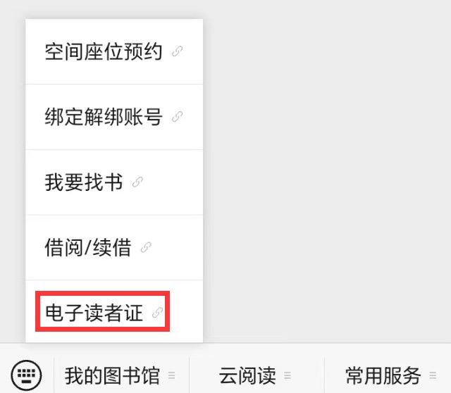 1、关注“广西民族大学图书馆”公众号,点击“我的图书馆-电子读者证”。