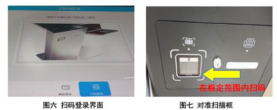 (二)成功切换扫码登录模式(图六)后,出示虚拟卡身份码对准扫描框(图七),听到一声“嘀”音即表示扫码成功。存在欠书或欠款的读者无法扫描登录和借书。